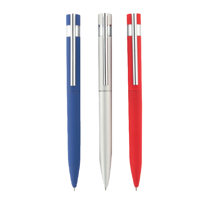 Bolígrafo metálico con acabado soft-touch. Suministrado en funda de regalo.
