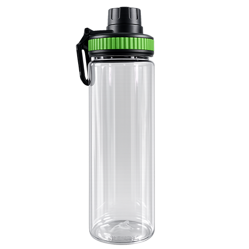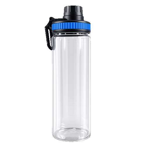 Botella deportiva transparente de plástico resistente