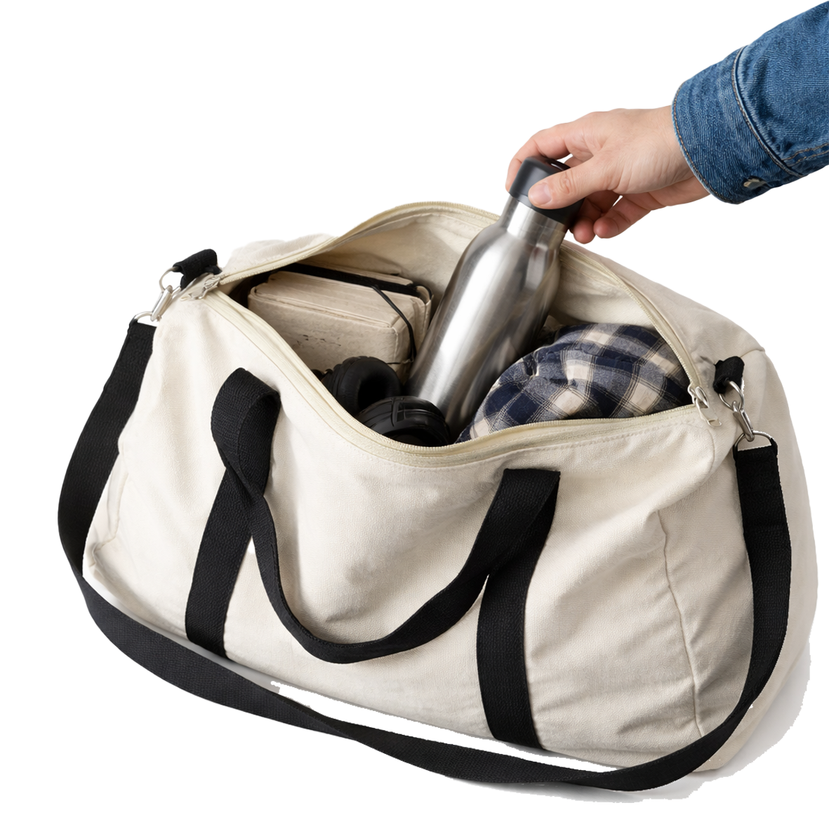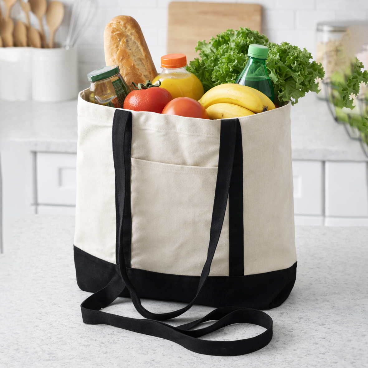 Bolsa tipo tote de manta resistente en diseño bicolor.