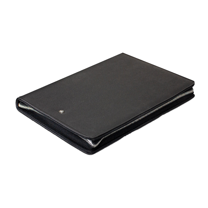 Portafolio A4 con bolsillos internos, porta tarjetas, bloc de notas y cierre de cremallera.  Suministrado en caja de regalo.