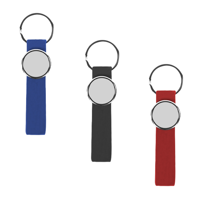 Llavero con banda de silicón y base metálica. Suministrado en caja de regalo.