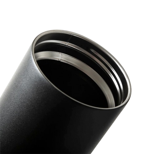 Botella de acero inoxidable con doble pared aislante, equipada con tapa de rosca y practica asa.
