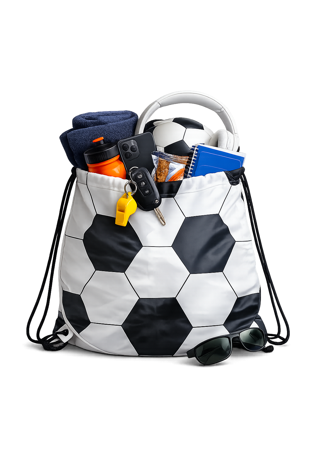 Mochila tipo saco con diseño de balón de fútbol.