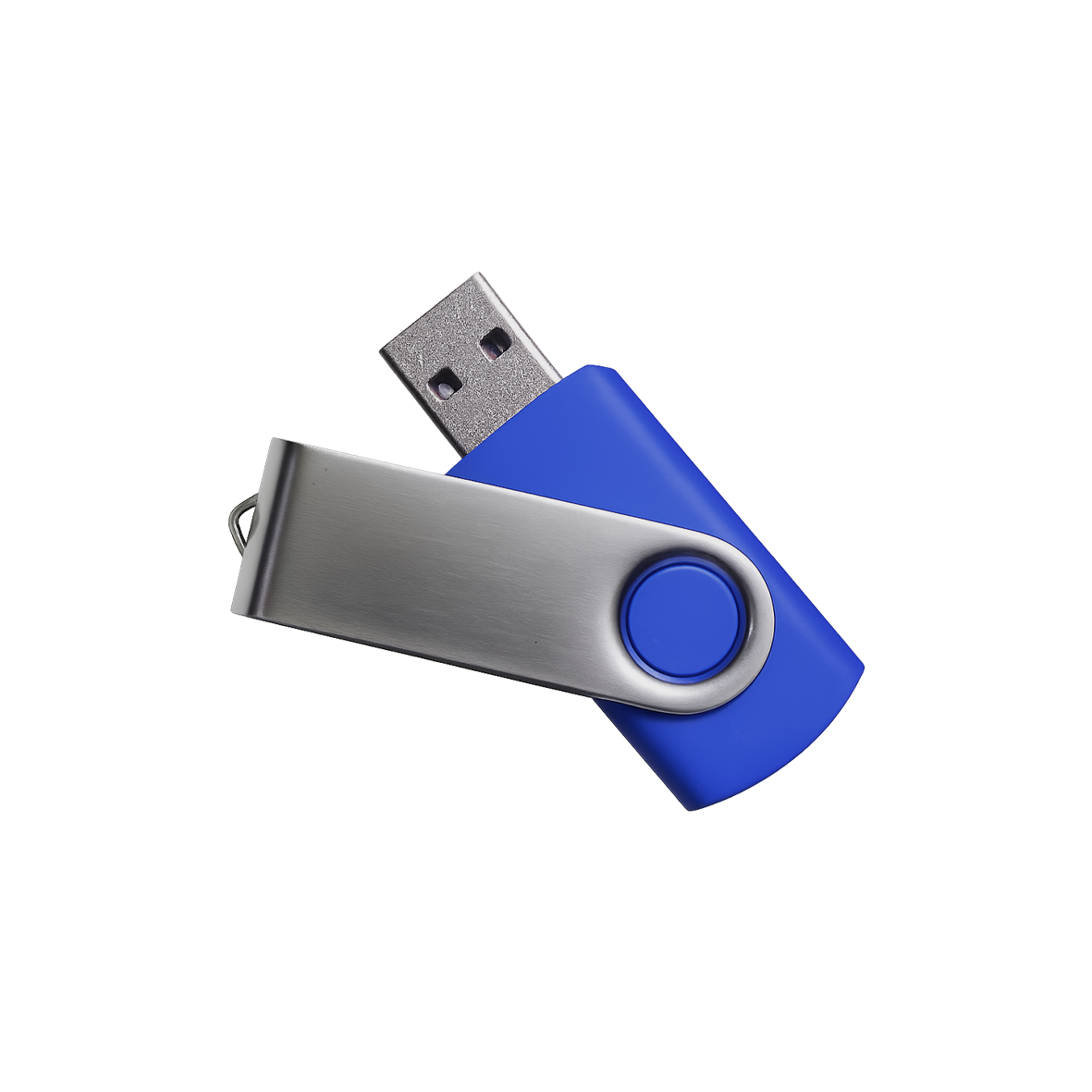 Memoria USB de 4 GB con diseño giratorio y carcasa metálica.
