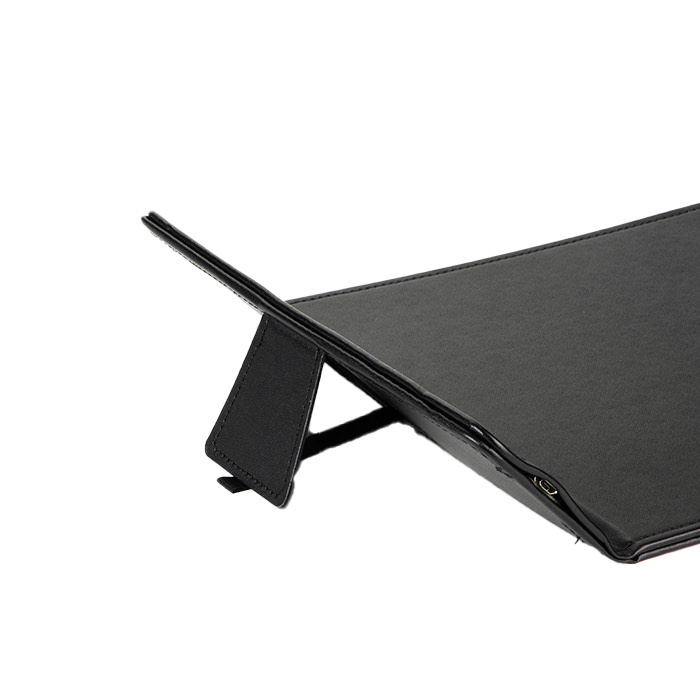 Mousepad de cuero sintético con cargador inalámbrico para dispositivos móviles con tecnología Wireless Qi.