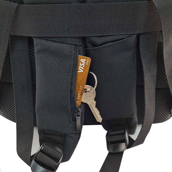 Mochila premium con compartimiento para laptop. Respaldo y tirantes acojinados. Bolsillo trasero oculto de fácil acceso.