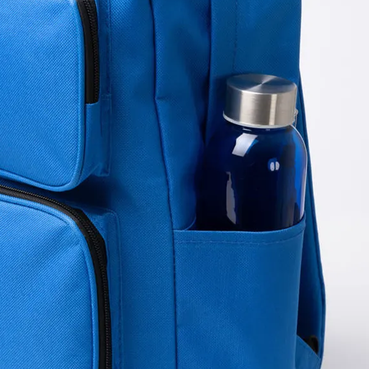Mochila fabricada en poliéster con compartimiento para laptop. Respaldo y tirantes acojinados.