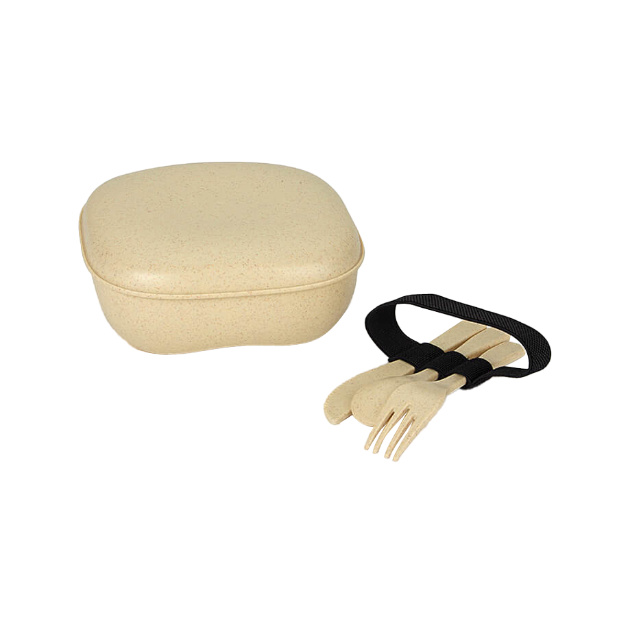 Hermético de fibra de trigo. Incluye cuchara, cuchillo, tenedor.