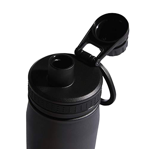 Botella térmica en acabado negro mate texturizado, diseñada para mantener la temperatura por más tiempo. Cuenta con tapa de rosca segura y asa lateral ergonómica que facilita su transporte.