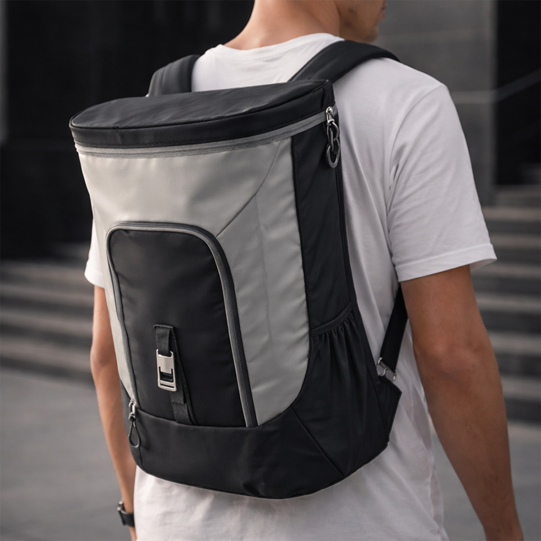 Hielera backpack con diseño moderno y práctico.
