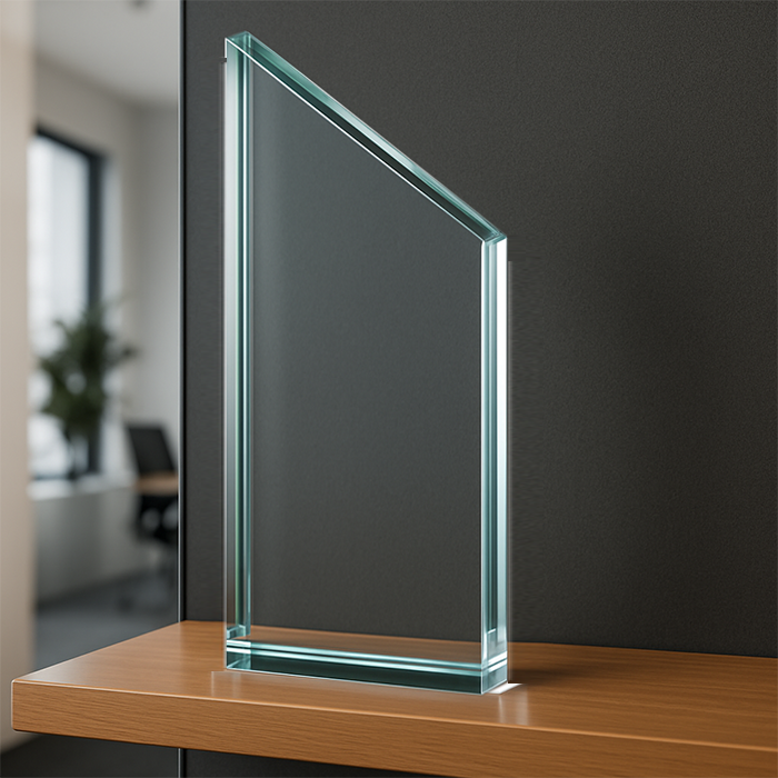 Trofeo de cristal con diseño inclinado