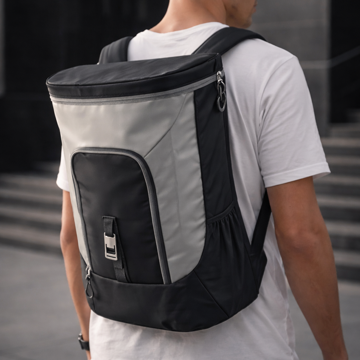 Lonchera térmica con diseño moderno y práctico, ideal para llevar alimentos y bebidas de forma cómoda y segura. Su estilo tipo mochila y compartimento frontal la hacen perfecta para el uso diario.