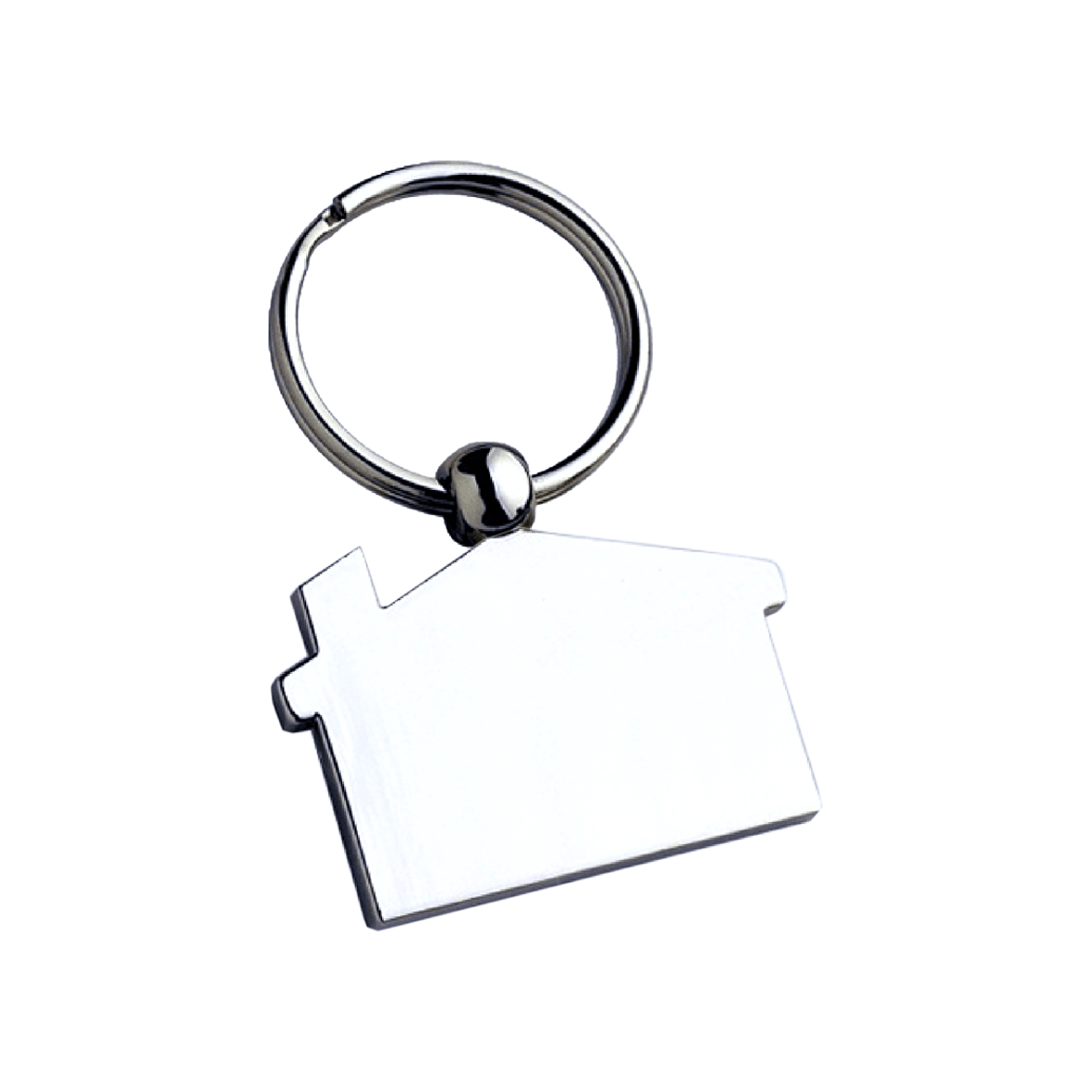 Llavero metálico en forma de casa, elegante y resistente.